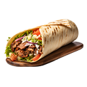Tender chicken shawarma in a wrap with salad & your choice of sauce.